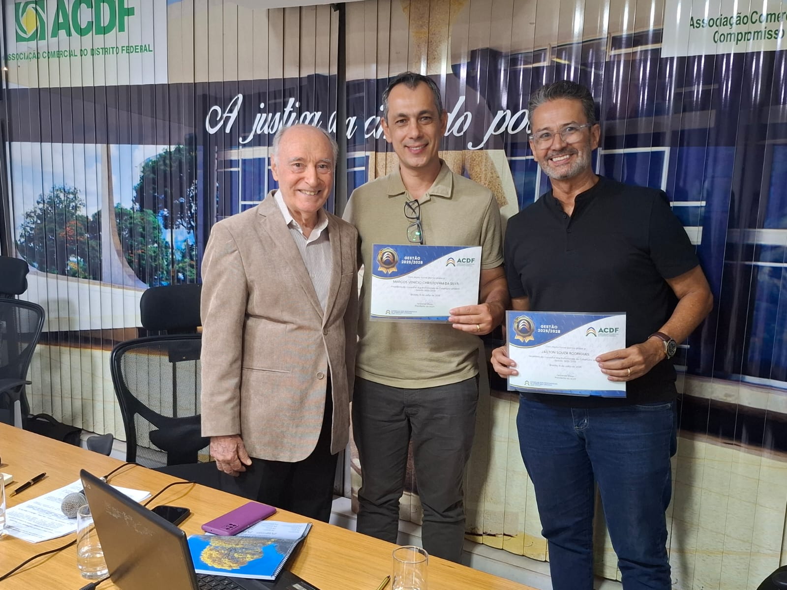 Durante a solenidade, foram entregues certificados de posse ao Conselho de Estruturas Lonadas, presidido por Marcos Venício Christovam, e às conselheiras Meire Lúcia Gabriel, Maryvan Rossi, do Longevidade e Vanessa Mastrangelo do MEI. Também foi realizada a posse simbólica de Gustavo de Oliveira Araújo como Diretor de Relações Institucionais, que destacou sua ligação histórica com a ACDF e o legado de seu pai, ex-diretor Antonio Carlos Pires de Araújo.